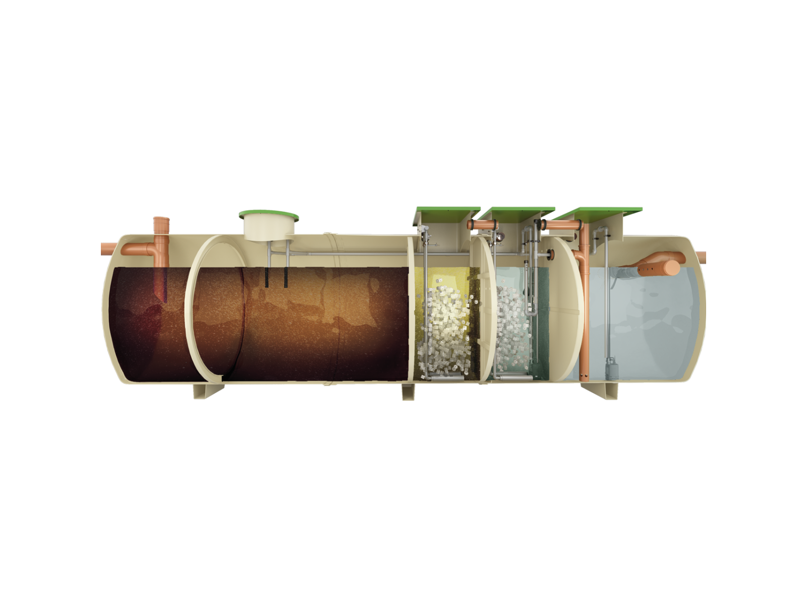 W oczyszczalni BioFicient® zastosowano połączenie procesów tlenowych i beztlenowych w układzie złoża fluidalnego. Działa ona, wykorzystując połączenie zaawansowanego systemu dyfuzorów powietrza i specjalnych nośników, aby zapewnić optymalny poziom oczyszczania.